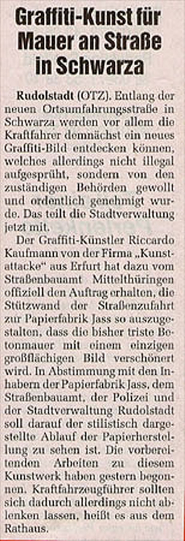 Zeitungsartikel über Kunstattacke-Projekte